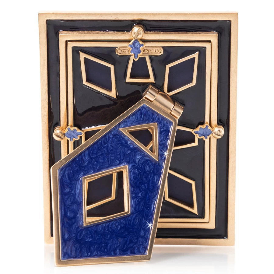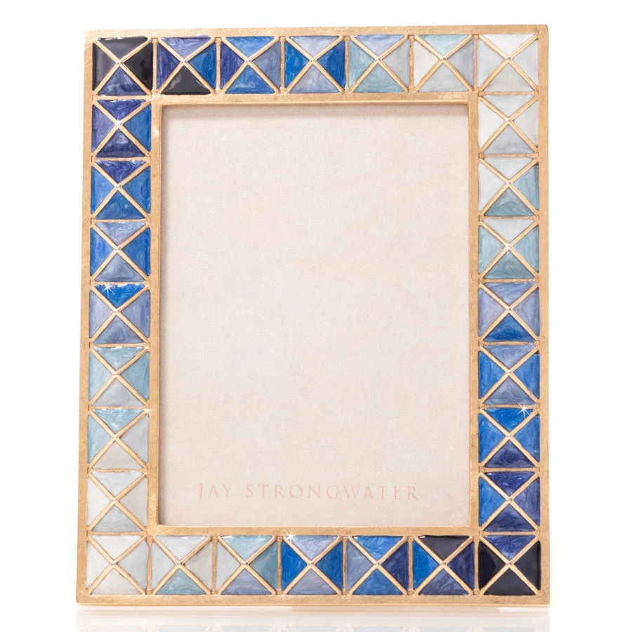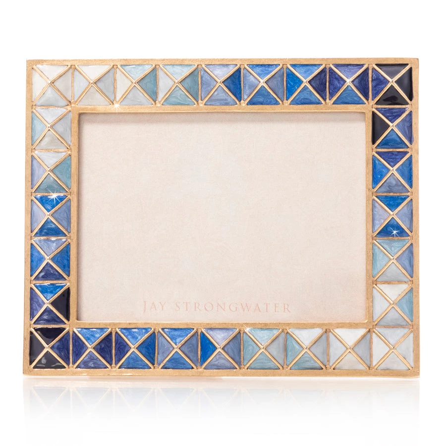 Inky deep indigo fades into creamy white for the modern ombre effect of this geometric metal frame. Finished in 14K gold, the clean lines of the three-dimensional pyramid shapes make this frame the ideal showcase for your favorite photo memories.
