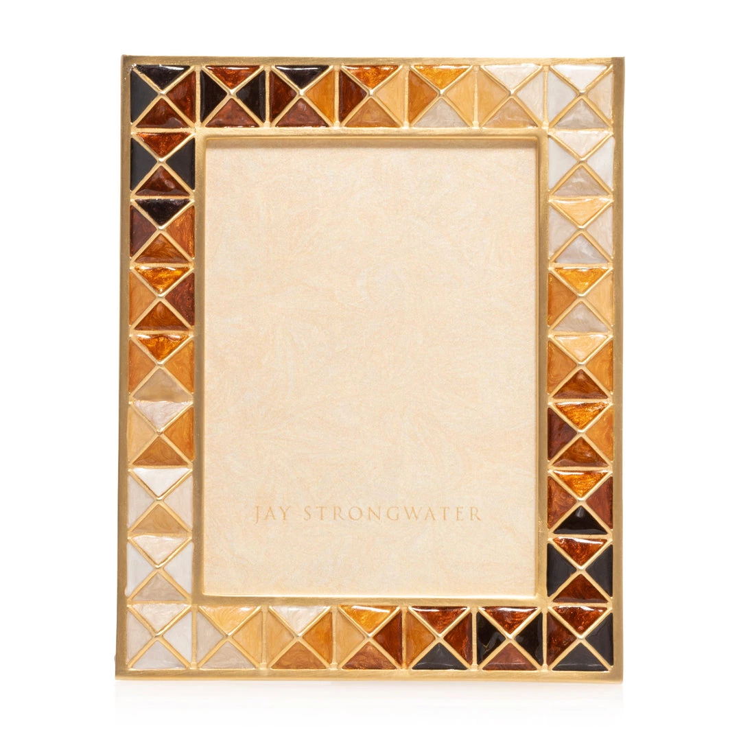 Gleaming rows of polished faceted metal pyramids – enameled in ombrĂ© shades of creams, amber and cognac – define the Abaculus Pyramid 3” x 4” Frame with a sleek modern sheen. Front, back and kickstand formed by pouring molten metal into molds, hand polishing and then finishing in 14K gold. Each pyramid’s facets are hand-painted in a kaleidoscope of golden enamels. With our signature enamel metal back plate and kickstand – this frame is truly beautiful from any view. Frame stands vertically or horizontally.