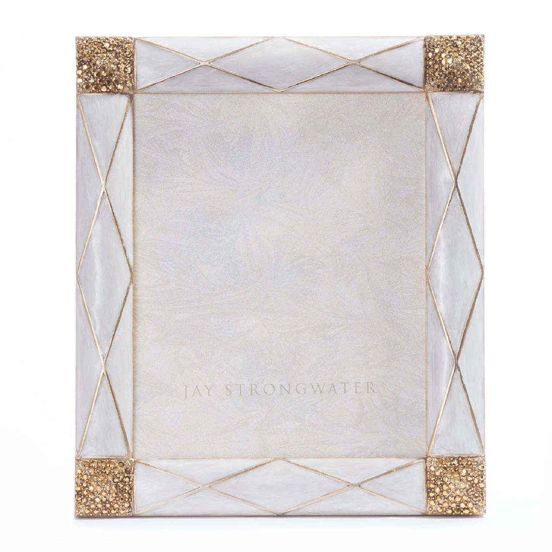 Simply elegant, the crisp white enamel of the Golden Alex Argyle 3″ x 4″ Frame fits seamlessly with every décor style. Finished with 14K gold and hand-set with Swarovski® crystals.
