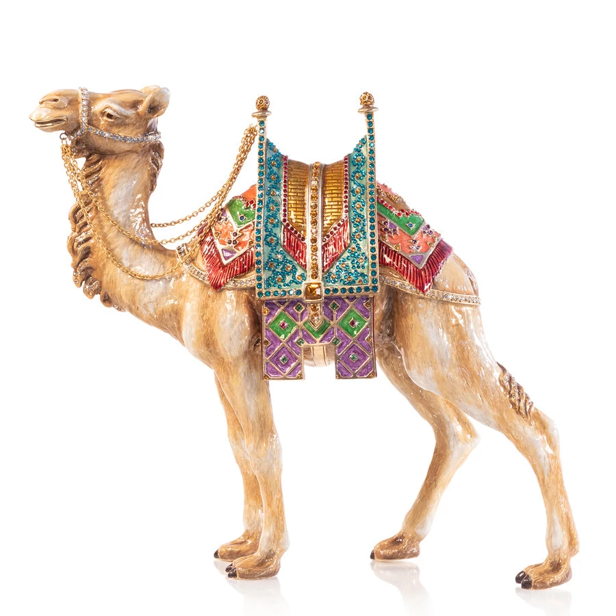 Cast and painted by our master artisans in translucent enamel and 14K gold, Alex the Camel showcases over 1100 individual Swarovski® crystals and perfectly captures the opulence of storied Arabian nights.