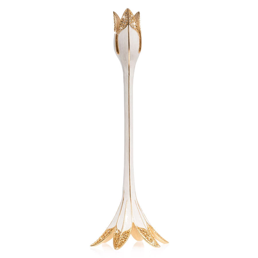 Pewter candlestick with a 14K gold finish, hand-enameled and hand-set with Swarovski® crystals at the Jay Strongwater Rhode Island workshop.