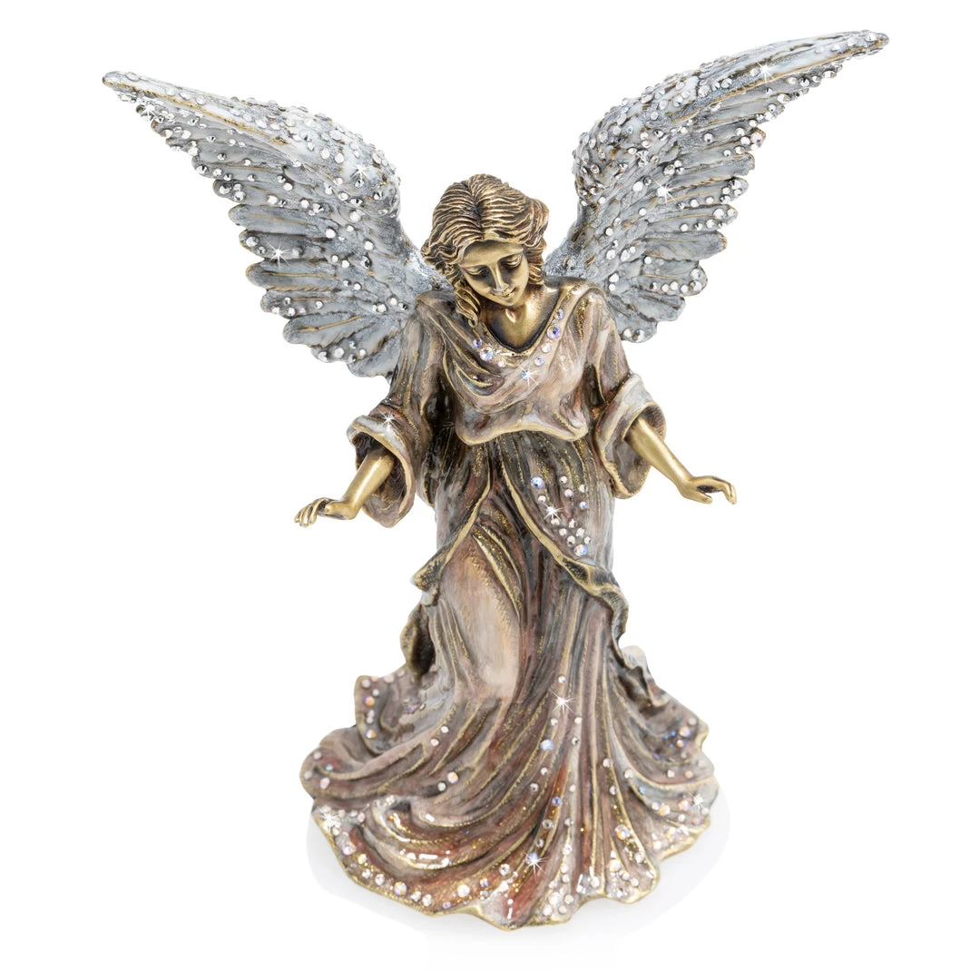 Glorious icons exemplify the best of Jay Strongwater. Our Angel Figurine is covered in flowing robes in hues of gold, silver and flora orange. Adorned with Swarovski® crystals, bringing a little sparkle and joy to your home this holiday season.