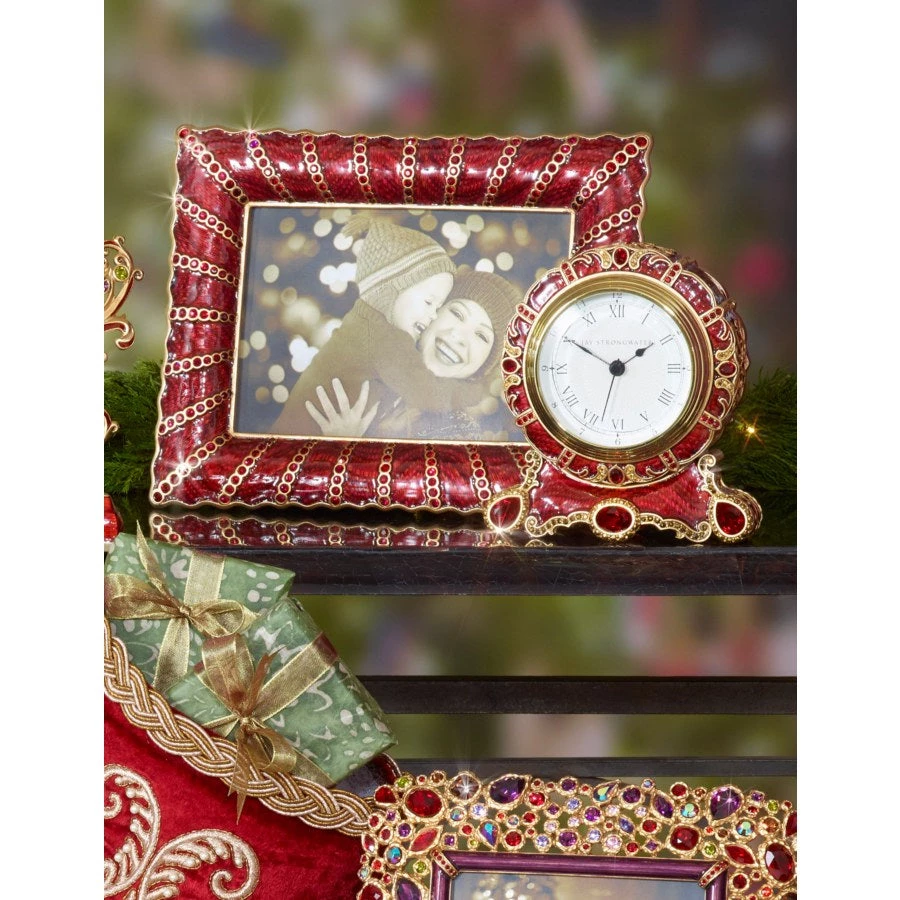 Our brilliant, ruby-hued jeweled and enameled Blair Ruffled Edge 5″ x 7″ Frame sparkles in twinkling light. Its distinctive striped, marbleized pattern is hand-painted on gold-finished metal with Swarovski® crystal accents.