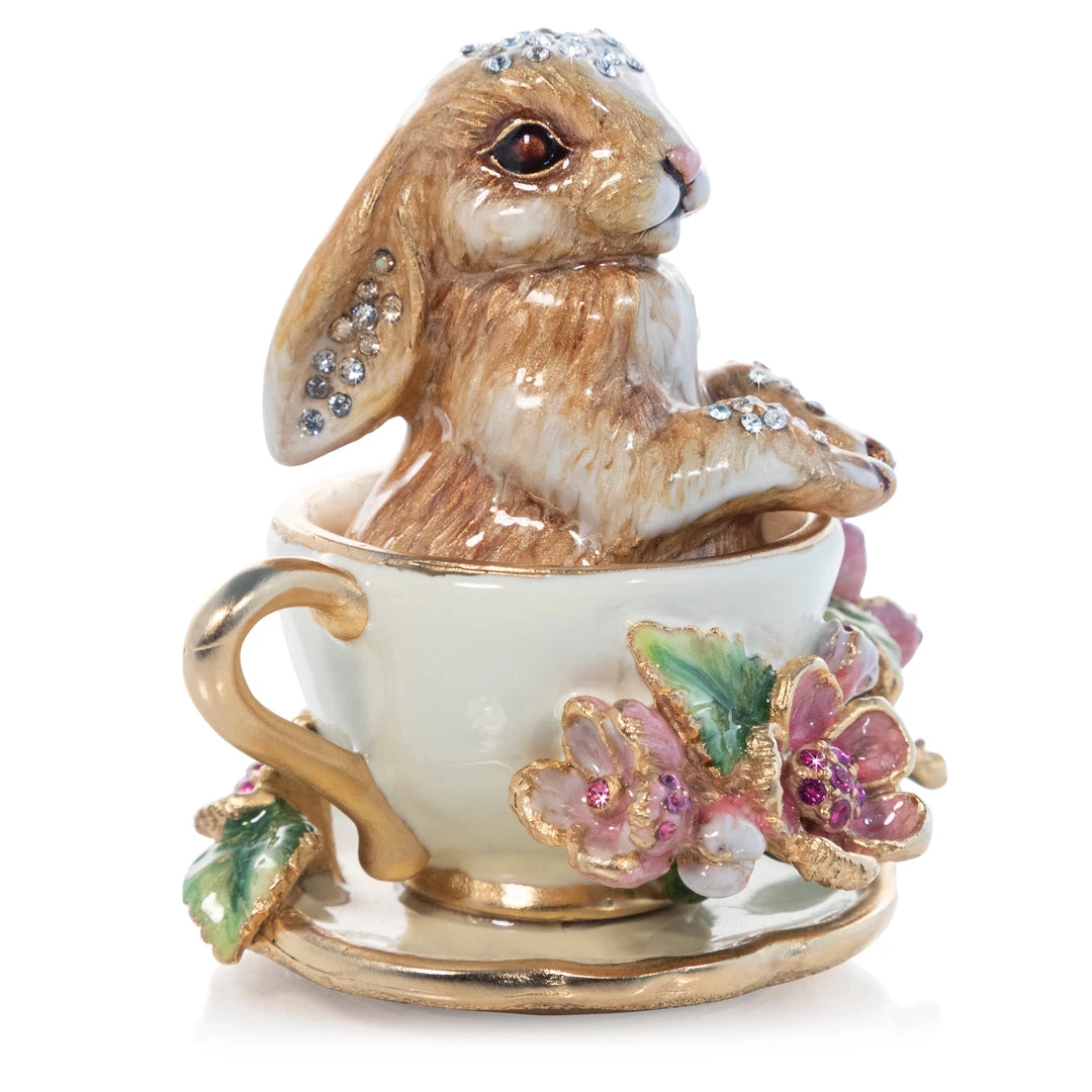 Celebrate the arrival of spring with this charming enamel box featuring an adorable bunny in a floral teacup. Hand-enameled by our master artisans and adorned with 115 crystals, this piece reflects all the sweetness of a springtime tea party!