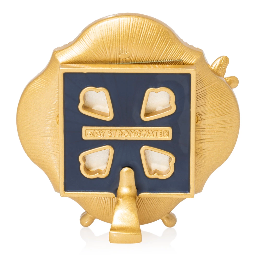 Cast Zinc. 14KT matte gold with light brown antique. Hand enameled and hand-set Swarovski® stones. Imported.