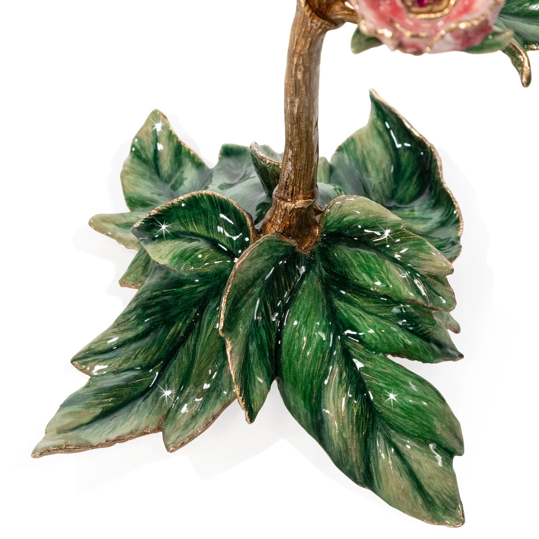With verdant leaves and vibrant pink petals finished in 14K gold, this sumptuous peony bloom objet captures every breathtaking detail of a freshly-picked flower. Sprinkled with over 120 crystal dewdrops, this perfectly delicate piece keeps the tantalizing beauty of fresh florals everlasting in your own home.