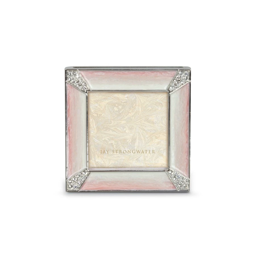 Classics for baby: Soft and sweet and sure to melt your heart. The pale pink Leland Pavé Corner 2″ Square Frame is exquisitely hand-enameled and hand-set with Swarovski® crystals.