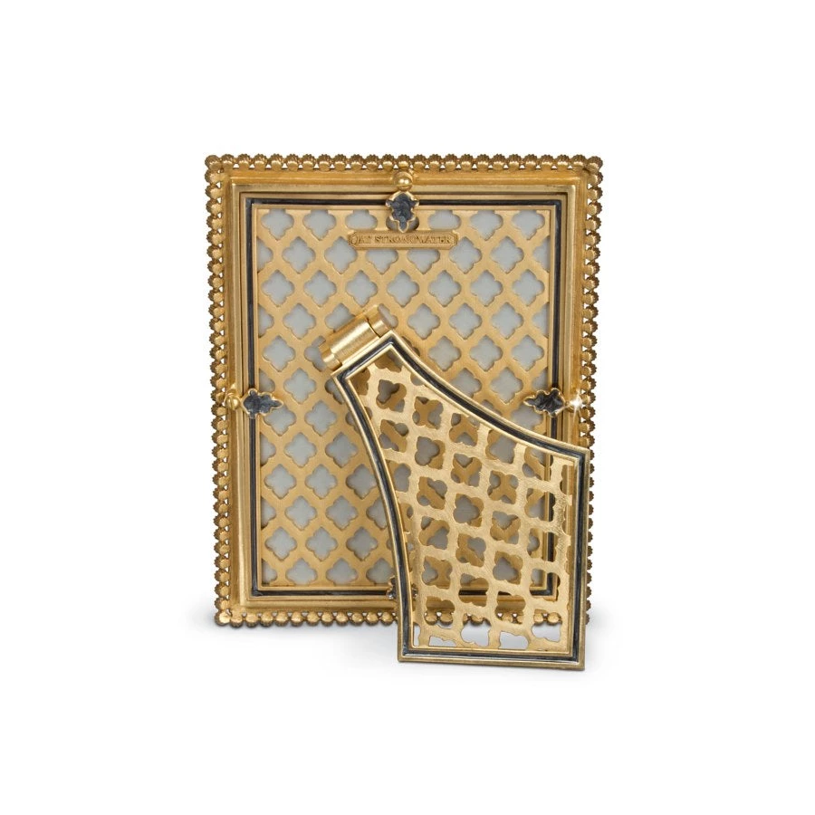 The Lucas Stone Edge 5″ x 7″ Frame from our Classics Collection gets a makeover, dressed in elegant platinum gray edged with 14K-gold-coated, faceted crystals.