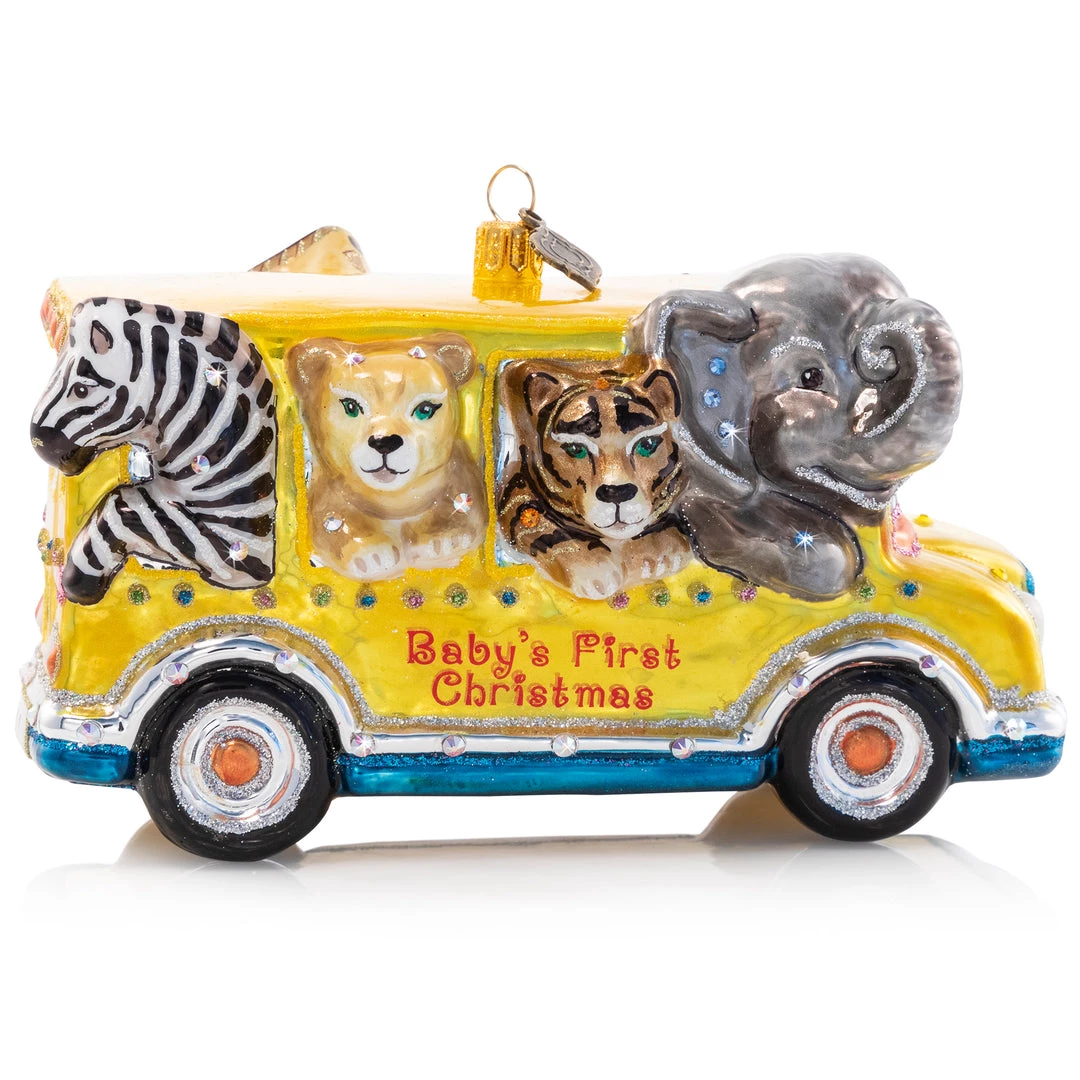 Celebrate your little one’s precious milestone with this adorable ornament commemorating baby’s first Christmas. Featuring darling zoo animals in a cheery yellow school bus, this piece has been lovingly hand-enameled and accented with the sparkle of Swarovski® crystals. This charming keepsake bauble is certain to become a cherished family heirloom for many first Christmases to come.
