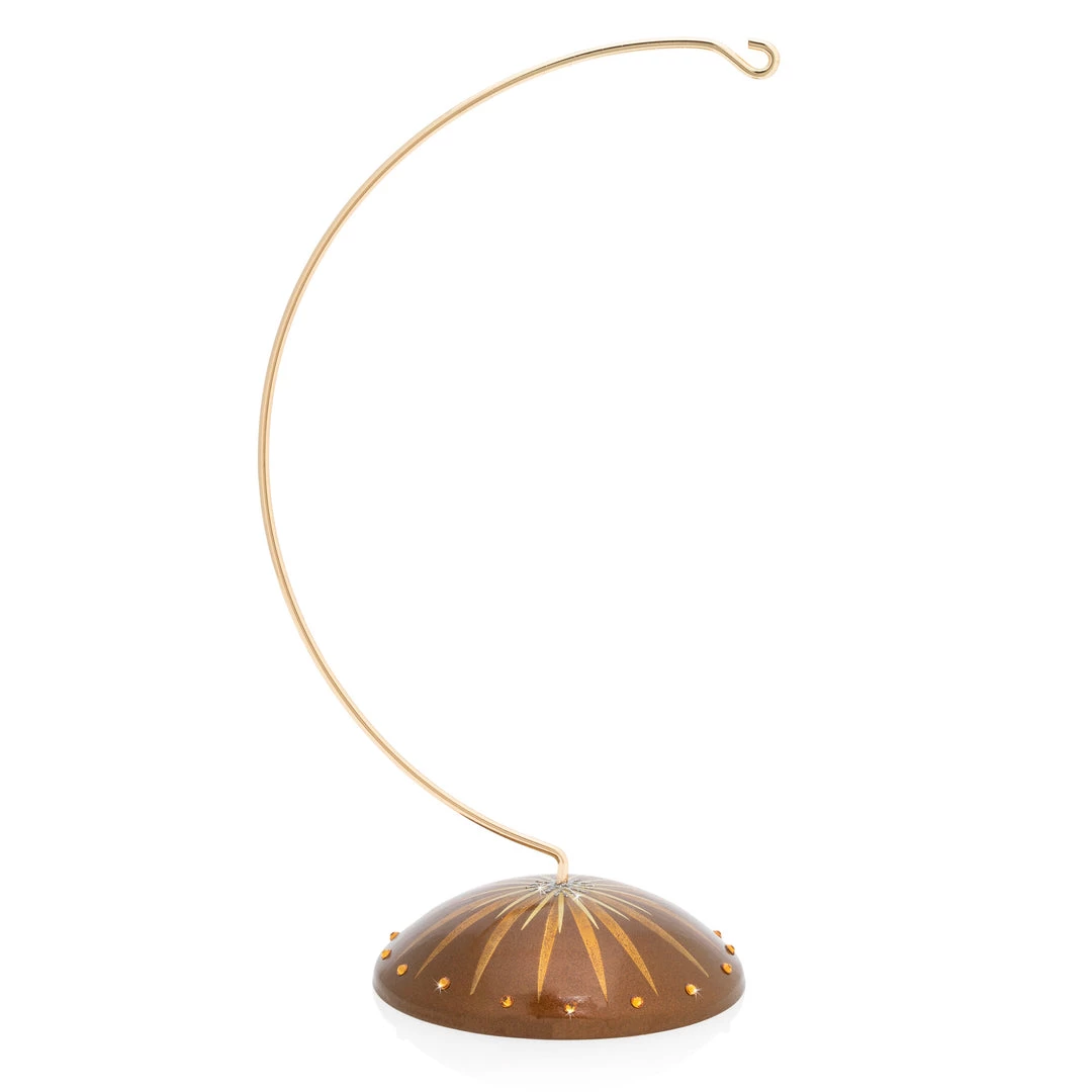 The perfect way to display your precious larger Jay Strongwater ornament is on our coordinating Large Ornament Stand. A polished brass arc rises from the hand-painted golden starburst base sparkling with Swarovski® Topaz shaded crystals.