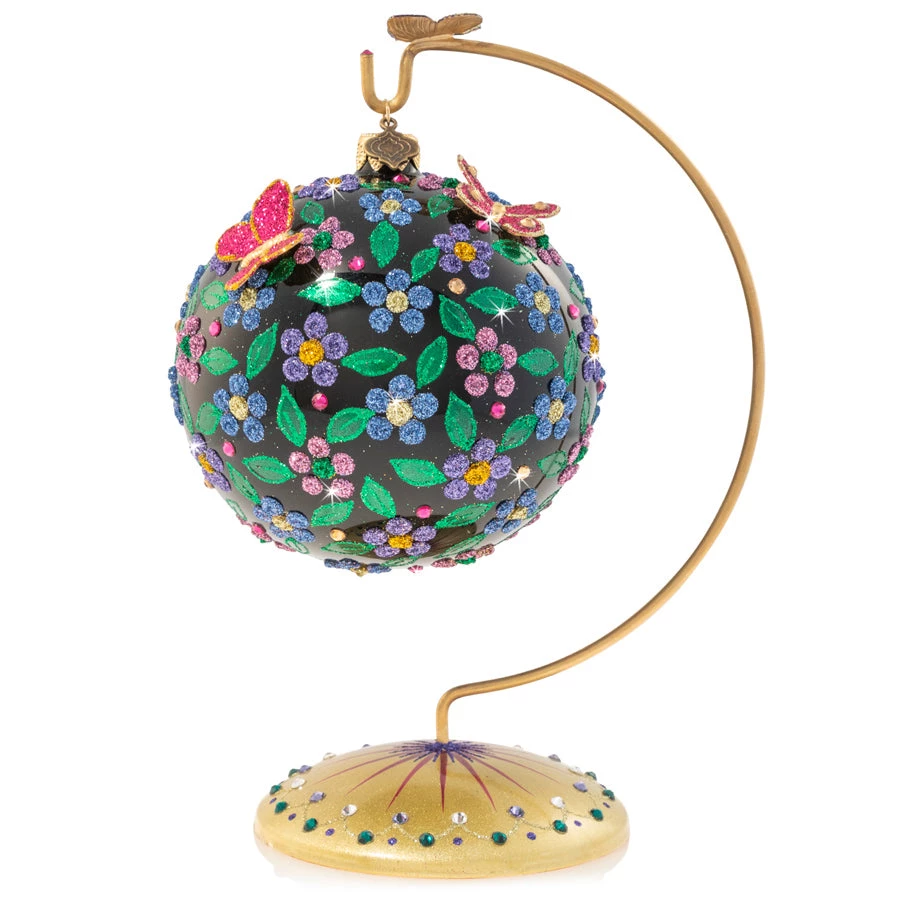 This beautiful violet ornament comes attached to one of our signature golden ornament stands. Stunning for display!