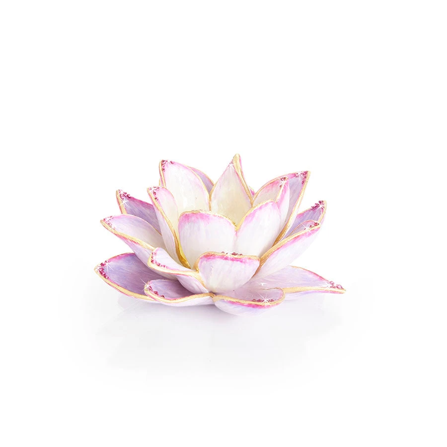 The universal symbol of peace, enlightenment and rebirth, a lotus plant produces beautiful flowers even with its roots in the murkiest of waters. Showing off its sunset hues of pink, purple, and gold, our breathtaking Kamal Lotus Table Objet opens from a golden center encrusted in topaz Swarovski® crystals, with fuschia crystals lining each petal. Invite new beginnings and serenity into your home with this piece, which is as meaningful as it is beautiful.