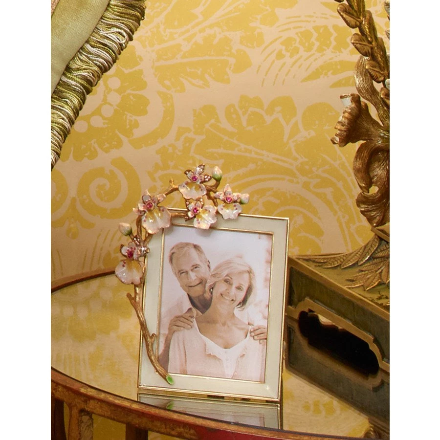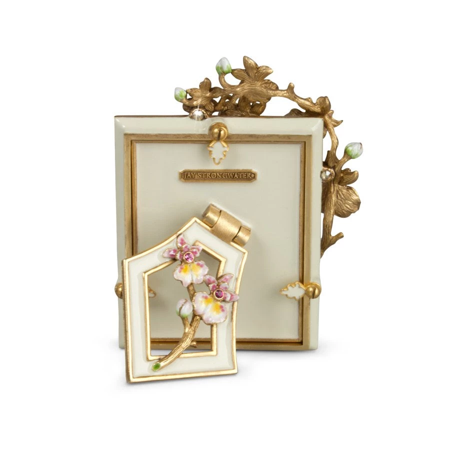 Our Bloomsbury Collection offers graceful, delicate style for table and home. Our creamy white enameled Kelsey Orchid 3″ x 4″ Frame is embellished with delicate hand-painted, jeweled orchids. Each cast metal piece is hand decorated in hothouse colors, and set with twinkling Swarovski® crystals.