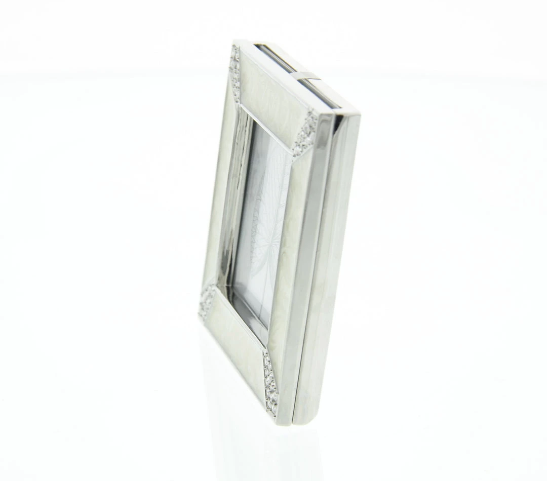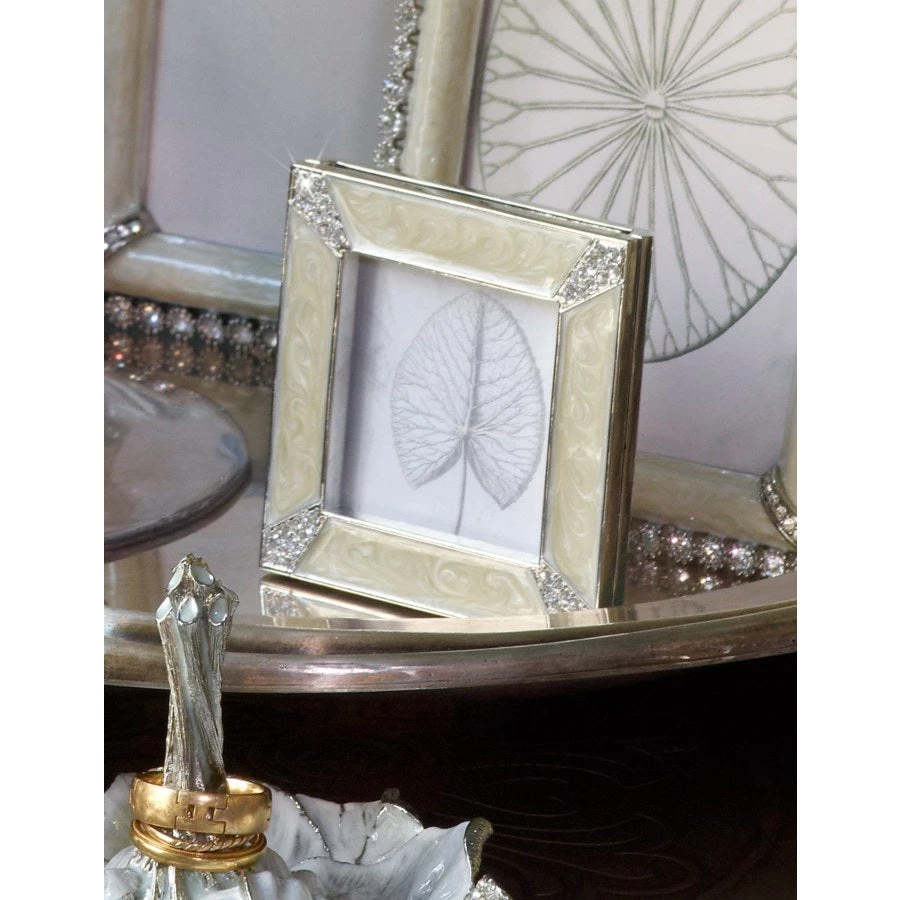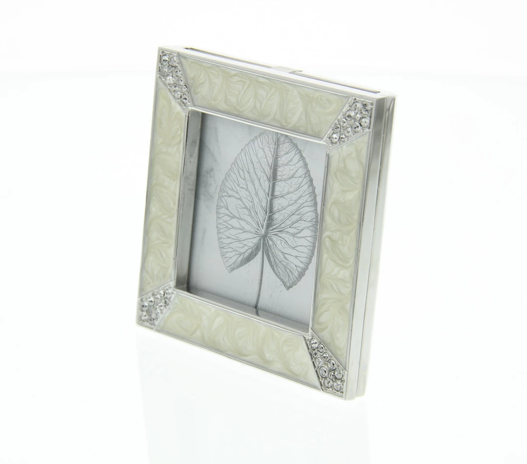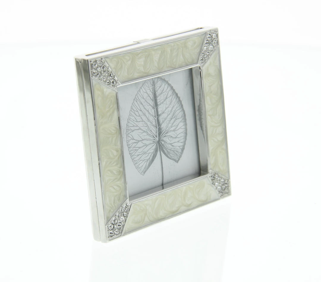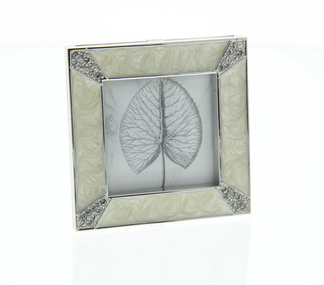 Simplicity, elegance, and versatility are the cornerstones of the Classics collection. The Leland Pavé Corner 2″ Square Frame features sophisticated crystal-pearl-hued hand enameling with just a touch of hand-set Swarovski® crystals at each corner.