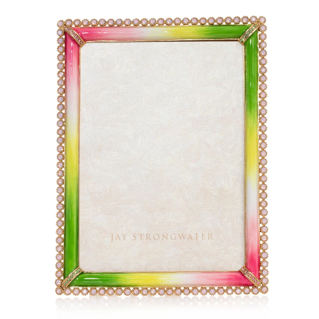 Our Lucas Stone Edge 5″ x 7″ Frame from our Classics Collection gets a vibrant springtime make over – with green and pink ombré enamel and hand-set Swarovski® crystals to border your loved ones.