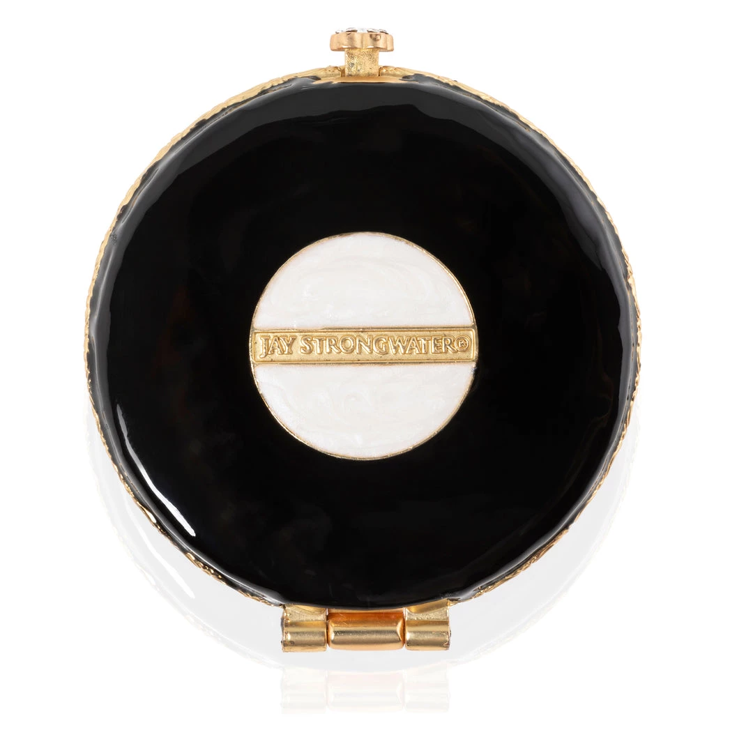 Show them how much you love them with our jeweled Monroe Lip Compact! Luscious red enameled lips with Ruby crystals from Swarovski® Pavé set on a jet black enameled compact. Gently push the jeweled button closure and reveal two mirrors to make sure you always look gorgeous.