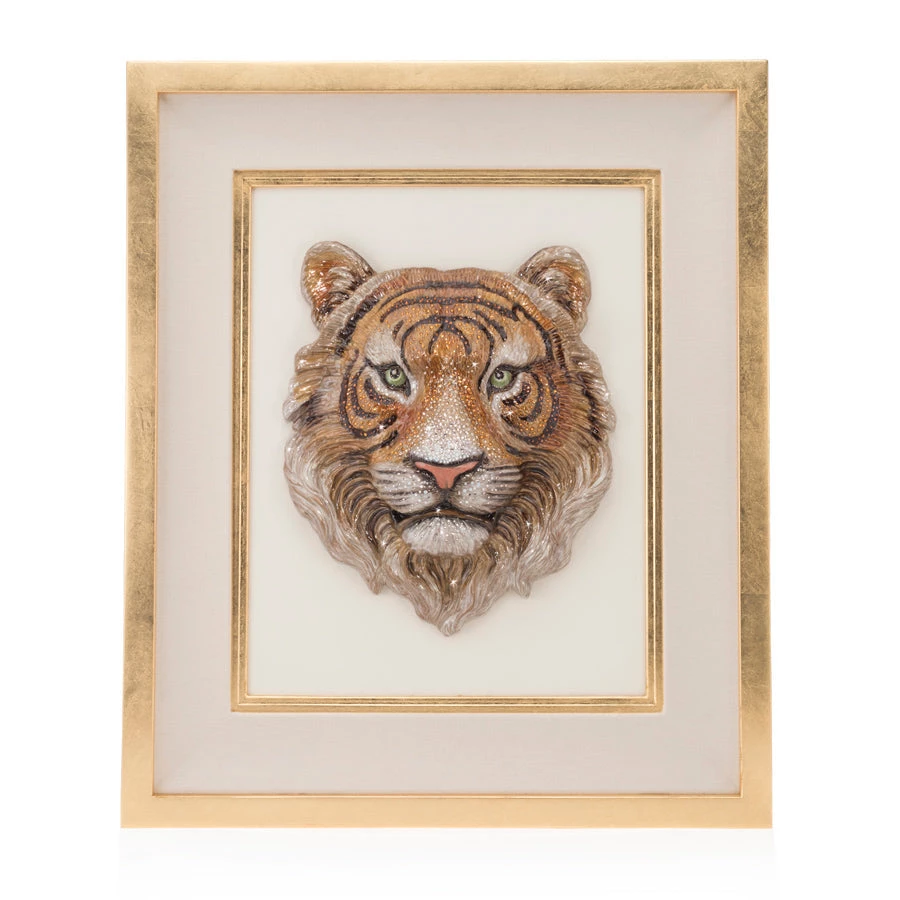 Sampson With over 4,000 Swarovski® crystals in shades of Peach and Tanzanite, our fierce and elegant Sampson Tiger Head Wall Art is the perfect addition to any home.