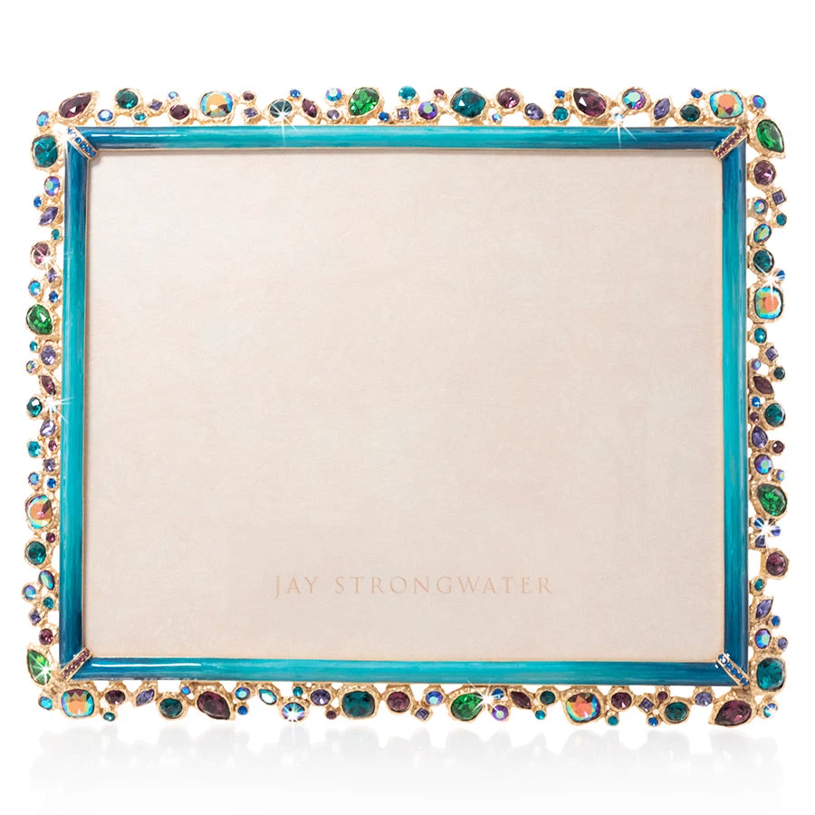 Give your favorite photos a glamorous upgrade by displaying them this stunning 10″ x 12″ frame. Large faceted Swarovski® stones in striking peacock blues and greens sparkle in a delicate golden lattice. This piece gives your most treasured memories the royal treatment!